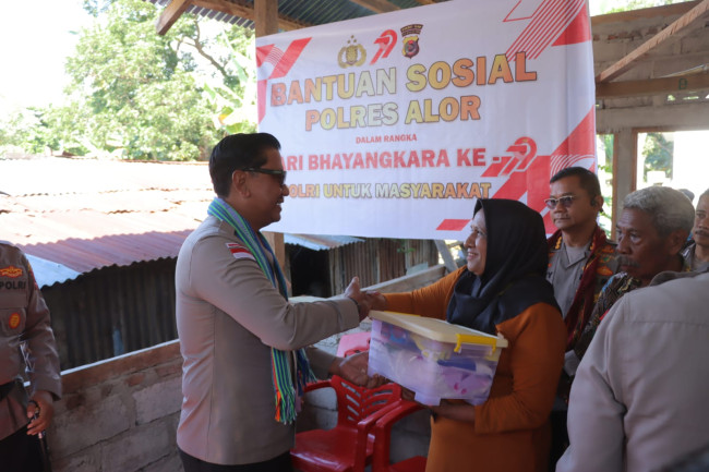 KUPANG,fokusnusatenggara.com — Dalam semangat menyambut Hari Bhayangkara ke-79, Wakapolda Nusa Tenggara Timur (NTT) Brigjen Pol. Baskoro Tri Prabowo, S.I.K., M.H. memimpin aksi kemanusiaan dengan membagikan ratusan paket bantuan sosial (bansos) kepada masyarakat rentan di Kantor Kelurahan Nusa Kenari, Kabupaten Alor, Sabtu (14/6/2025).