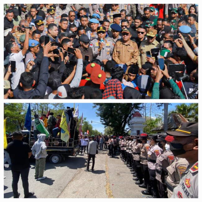 Massa sekitar 60 orang dari Aliansi Cipayung Plus menggelar aksi di Polres TTS dan DPRD Kabupaten TTS. Pengamanan dilakukan oleh 130 personel gabungan TNI-Polri.