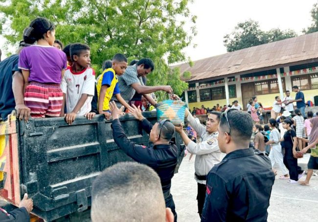 Personel Polres Flotim bekerja sama dengan TNI, BPBD, Dinas Sosial, dan relawan lokal untuk memberikan bantuan kemanusiaan kepada ribuan pengungsi.