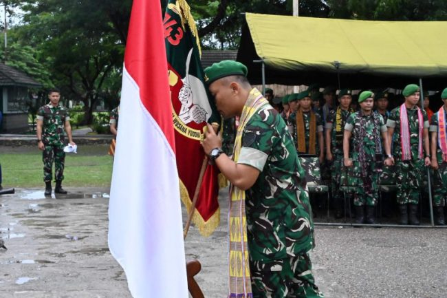 Tradisi Penciuman Bendera Perang Batalyion Infantri 743/PSY.
