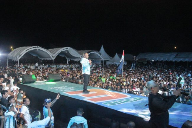KUPANG, fokusnusatenggara.com– Puluhan ribu massa yang memadati lapangan Lasitarda Kupang pada Rabu (13/11/2024), Pukul 15 : 00 Wita, untuk mengikuti kampanye akbar Pasangan Calon Gubernur dan wakil Gubernur NTT, Simon Petrus Kamlasi dan Adrianus Garu atau Paket SIAGA tidak tahu jika SPK sapaan akrab Simon Petrus Kamlasi belum tiba di Kupang. Sudah tiga hari SPK di daratan Sumba dan tidak bisa terbang ke Kupang lantaran abu vulkanik dari erupsi gunung Lewotobi telah menyebar hingga Pulau Sumba.