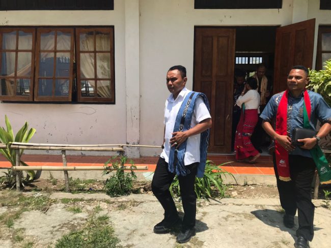 SPK didampingi sejumlah tim pemenangan mengikuti ibadah dengan khusyuk bersama jemaat setempat.