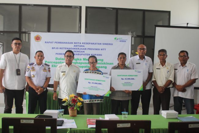 Penyerahan Santunan Kematian kepada dua keluarga pegawai yang meninggal yang dilakukan langsung oleh Penjabat Bupati Kupang, Alexon Lumba, tersebut, terlaksana adalah karena adanya kerjasama antar Pemerintah Kabupaten Kupang dan BPJS Ketenagakerjaan NTT, dan semua Pegawai dilingkup Pemerintah Kabupaten Kupang, menjadi anggota BPJS Ketenagakerjaan. Santunan diserahkan di Aula Kantor Dinas Tenaga Kerja dan Transmigrasi Kabupaten Kupang, Oelamasi, Rabu (4/12).