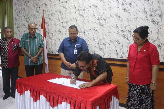 Penandatanganan Nota Kesepakatan dilakukan Pemerintah Kabupaten Kupang dengan BPJS Cabang Kupang tentang penyelenggaraan jaminan kesehatan nasional dalam rangka universal health coverage bagi penduduk Kabupaten Kupang.