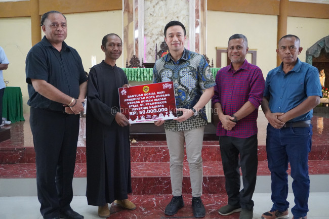 KUPANG, fokusnusatenggara.com — Wali Kota Kupang, dr. Christian Widodo, menyerahkan secara simbolis bantuan sosial senilai Rp50 juta kepada Stasi St. Fransiskus Xaverius Naimata, Minggu (29/6). Bantuan tersebut merupakan bagian dari program bantuan sosial rumah ibadah tahun 2025, yang diberikan kepada rumah ibadah di Kota Kupang.